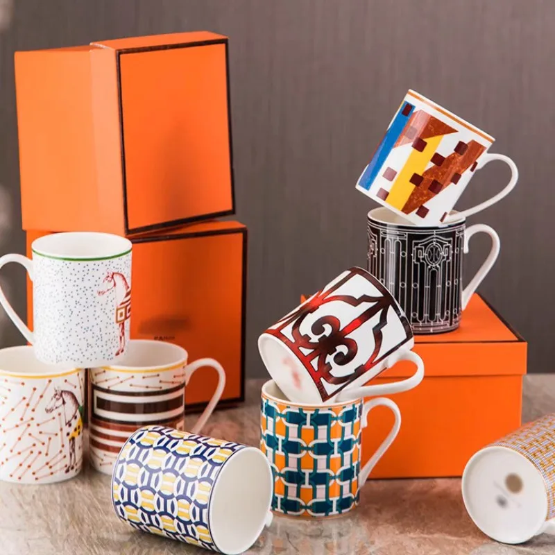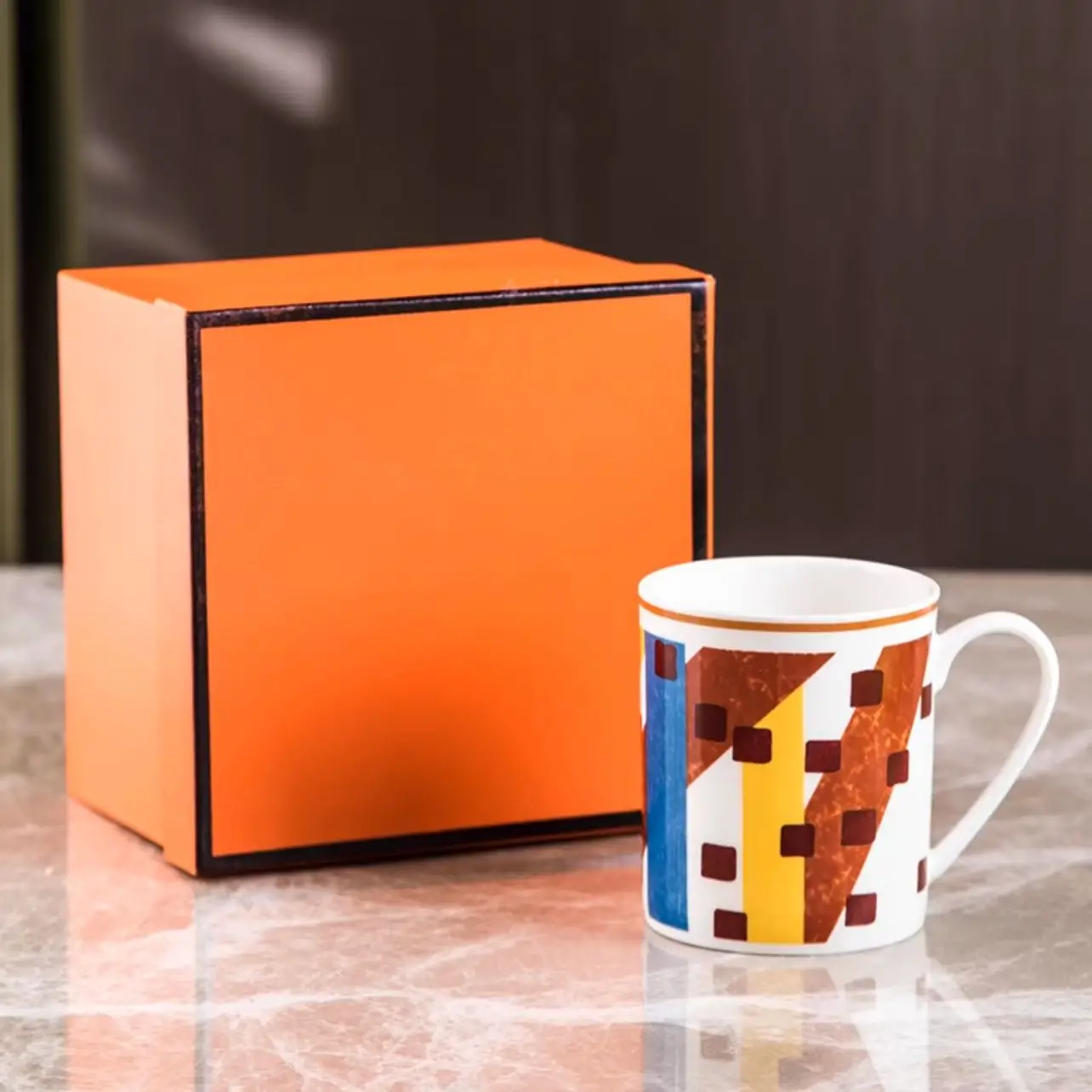 اسم المنتج: أنيقة النمط الأوروبي السيراميك القدح الفاخرة العظام الصين فنجان القهوة الإفطار كوب حليب فسيفساء تصميم العلامة التجارية هدية مربع