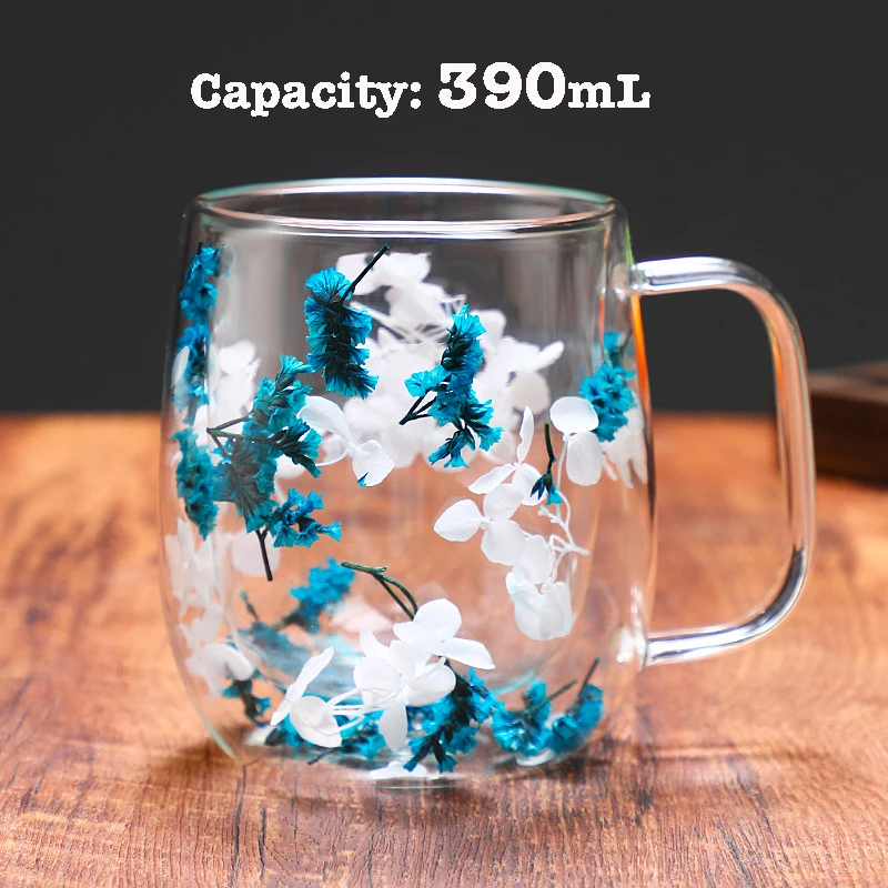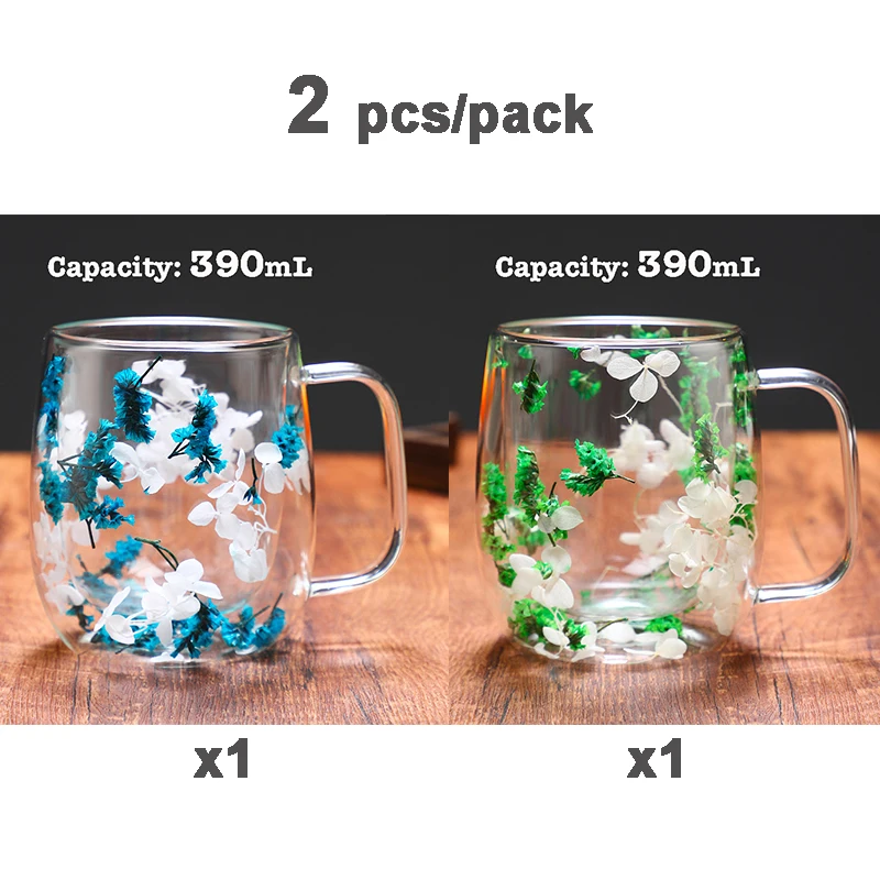 - مزين بالزهور المجففة داخل الزجاج لإضافة لمسة طبيعية فاخرة تجعل كل كوب قطعة فنية