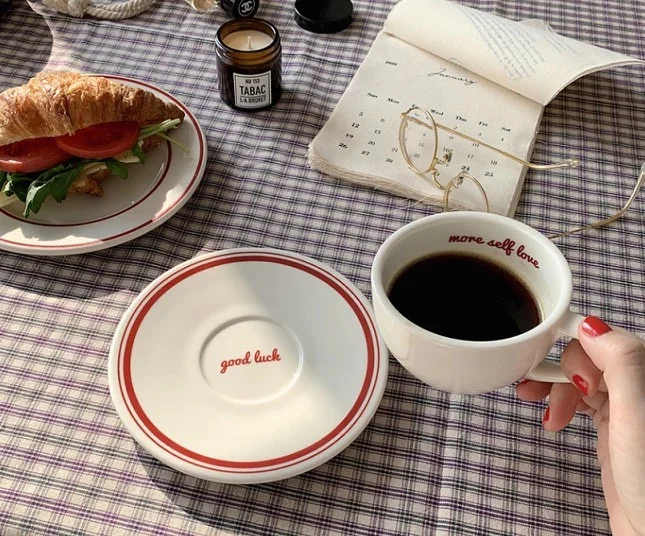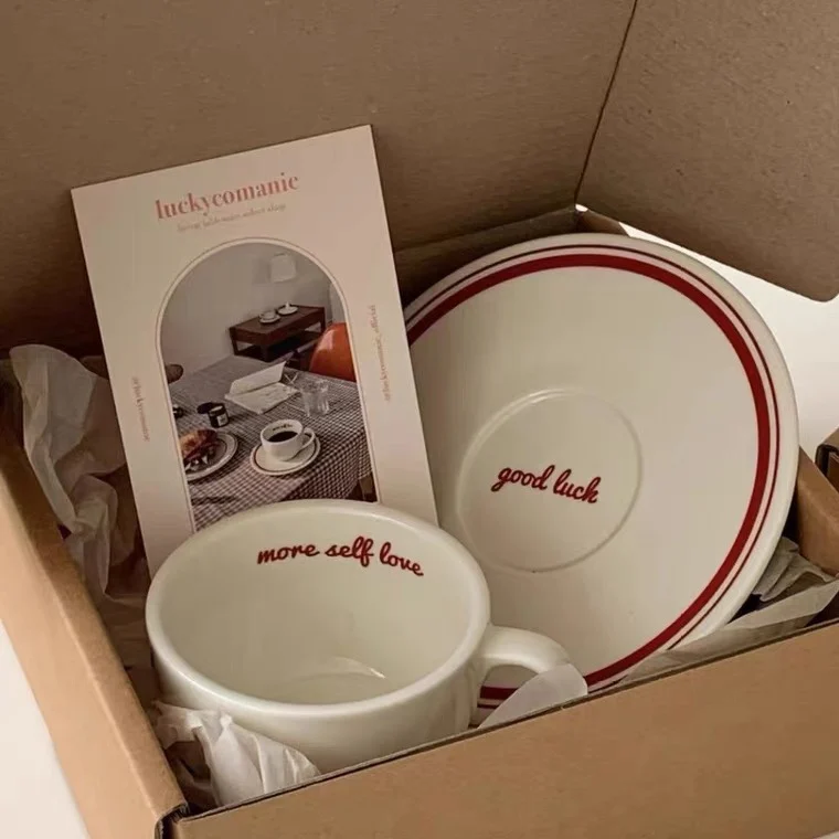 اسم المنتج: كوب قهوة سيراميك بتصميم خط أحمر على شكل قلب، أدوات مائدة بأسلوب نورديك، قطعة واحدة بلون نقي عصري